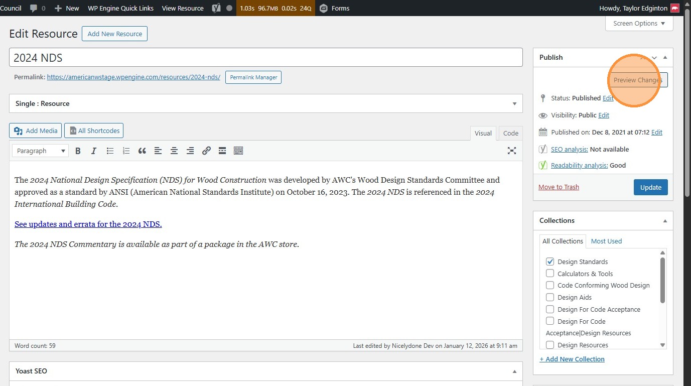 18. Click “Preview Changes” (opens in a new tab) to see your changes before they’re official. The Resource must be saved as a draft or published to do this.