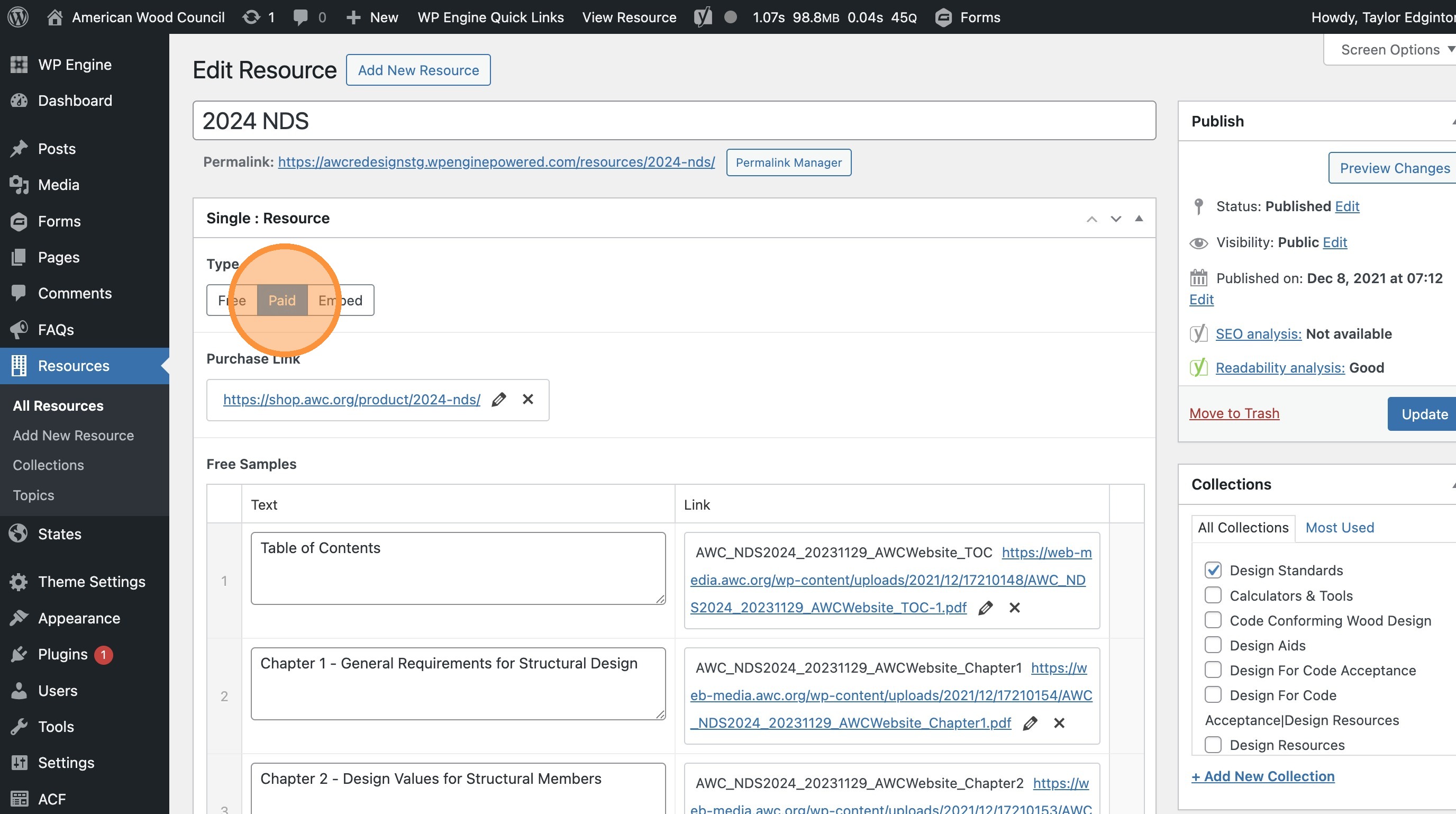 Section titled “5. Use these buttons to change whether the resource appears to paid users.”